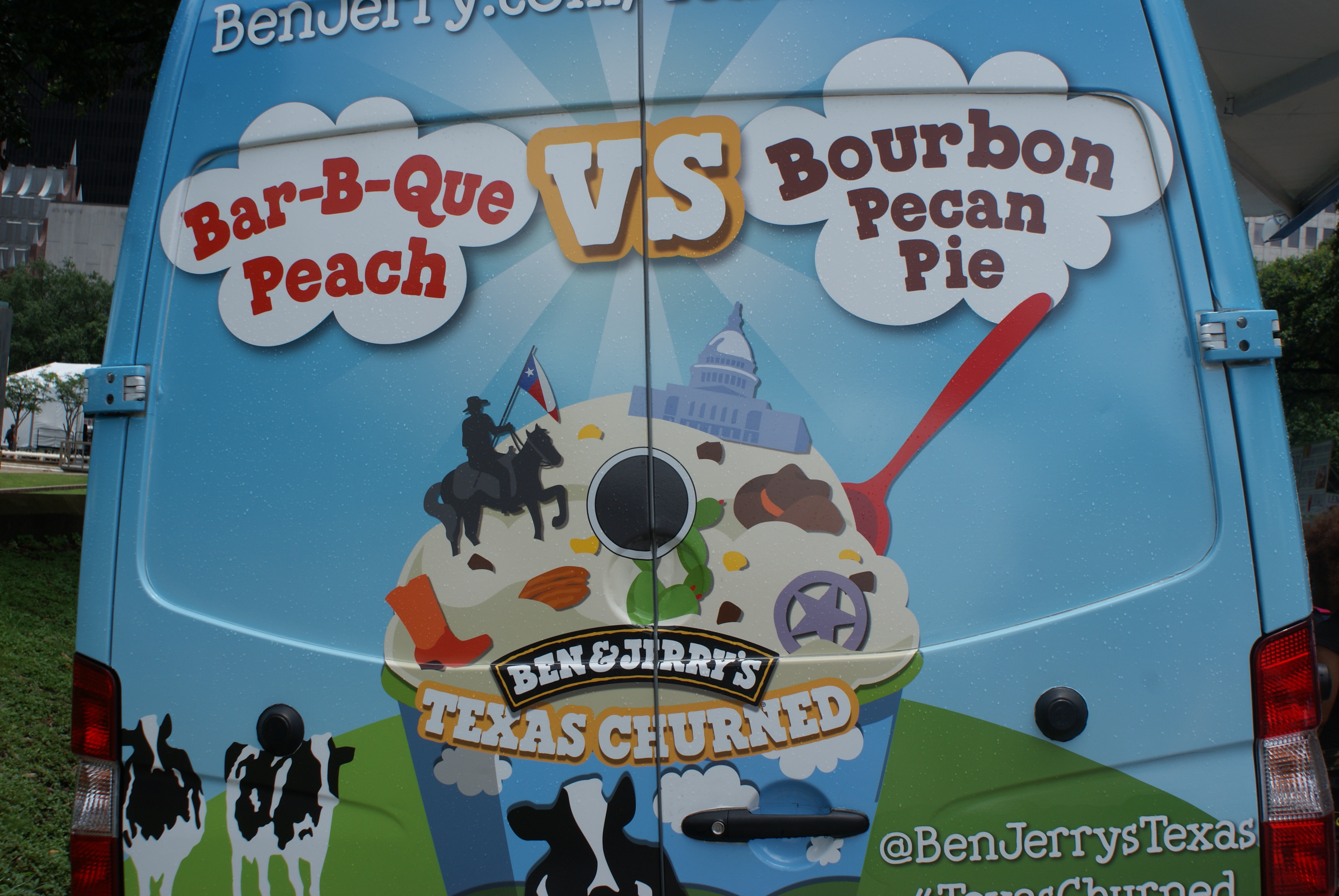 If you listened to the podcast, you heard that Ben & Jerry’s were bringing something special, and that they did. Free scoops of “Barbecue Peach” and “Bourbon Pecan” were available to vote on. I tried so hard to vote more than once because I couldn’t decide and they were both worth rigging democracy.